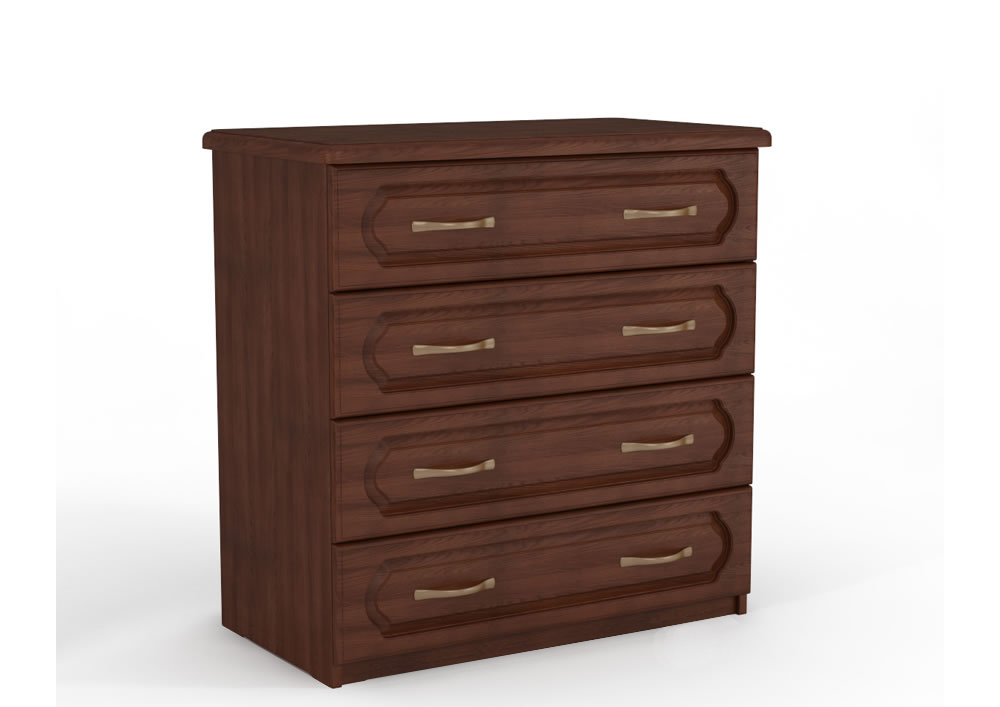 Комод изготавливается из массива бука или ясеня, включая боковые стенки. Вся мебель покрывается высококачественным полиуретановым лаком (Иcпания), что защищает поверхность от царапин и прочих повреждений. Комод обладает четырьмя вместительными выкатными ящиками на телескопических направляющих. Сборка не требуется.