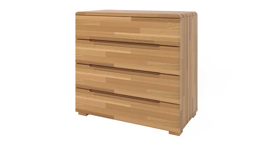 Комод серии Мальмо создан для людей, которые ценят простоту в деталях современного интерьера. Комод выполнен полностью из массива бука. По прочности бук схож с дубом, устойчив к механическим воздействиям, а также, обладает тонким ароматом натуральных смол, которые создадут неповторимый уют и тепло к комнате. Изделие имеет приятный тёплый оттенок, в каждом брусочке можно рассмотреть уникальный неповторимый рисунок дерева. Такой цвет позволит легко сочетать мебель данной коллекции с другими элементами вашей спальни. Ящики открываются и закрываются бесшумно и плавно благодаря использованию в производстве только самых качественных и долговечных механизмов. Ручки ящиков удобно вырезаны в фасаде, что добавляет комоду стильного минимализма и комфорта в процессе использования. А за счет скруглённых углов комод имеет обтекаемую, мягкую форму. Такое строение комода безопасно для использования и в детских комнатах. Опционально комод может быть оснащен автоматическими доводчиками выкатных ящиков, а также изменен по высоте за счет добавления или убавления ящика стандартного размера.