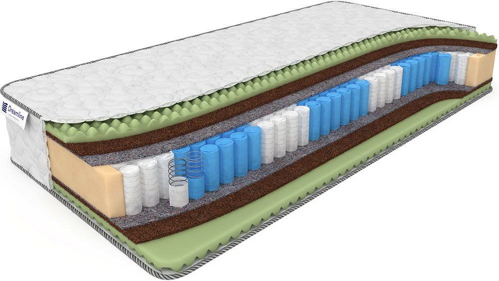 Внешний наполнитель – Ergo Foam – высокоэластичная пена с массажным эффектом и высокой анатомичностью. Внутренний наполнитель – латексированная кокосовая койра, придающая конструкции умеренную жёсткость. Модель смонтирована на современном высокотехнологичном пружинном блоке Smart Zone, усиливающим массажный эффект и позволяющим выдерживать нагрузку до 140 кг на одно спальное место. Изолирующий слой из термовойлока защищает наполнитель от контакта с металлом пружин, продлевая срок эксплуатации матраса. В комплект входит чехол Трикотаж Антистресс – приятная на ощупь трикотажная ткань успокаивающе действует на психику человека и легко пропускает воздух, позволяя телу свободно дышать.