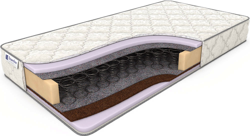 Данная модель смонтирована на классическом пружинном блоке Bonnel из трёх наполнителей разной степени жёсткости. Сторона А – наполнитель из эластичной пены обладает средним уровнем анатомичности, то есть принимает форму лежащего на нём тела. Сторона Б – сразу два наполнителя: внутренний из кокоса и внешний из эластичной пены, обеспечивает комфортную поддержку позвоночника и сбалансированное распределение массы тела до 110 кг.