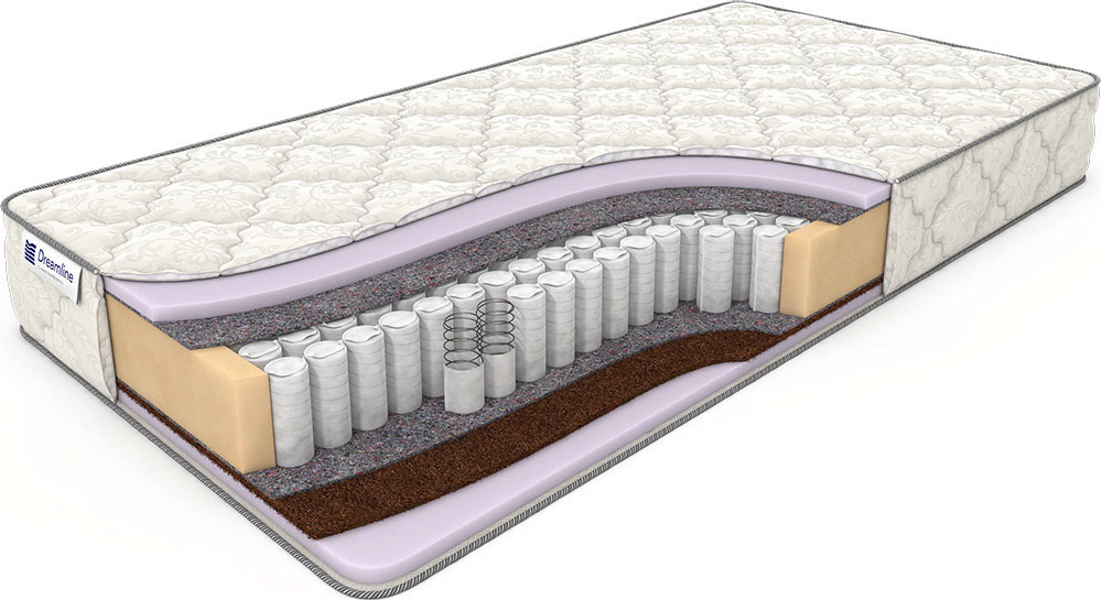 Недорогая комбинированная модель с ортопедическими свойствами, смонтированная на независимом пружинном блоке TFK. Сторона А – наполнитель из эластичной пены обладает средним уровнем анатомичности, то есть принимает форму лежащего на нём тела. Сторона Б – сразу два наполнителя: внутренний из кокоса и внешний из эластичной пены, обеспечивает комфортную поддержку позвоночника и сбалансированное распределение массы тела до 120 кг.