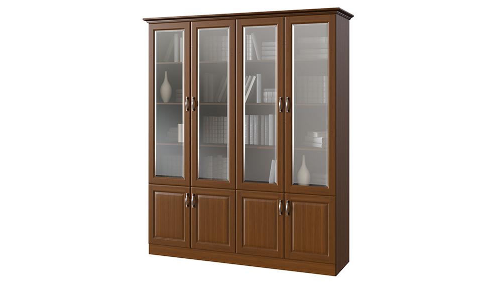 Четырёхстворчатый шкаф библиотека Эдем выполнен в актуальном классическом стиле. Подойдёт для людей, которые ценят порядок и чистоту. Благодаря прозрачному стеклу с фацетом в дверцах шкафа можно будет разглядеть все дорогие вашему сердцу книги и предметы декора, которые вы не хотели бы прятать к закрытый шкаф, но при этом они будут защищены от попадания пыли. Классический стиль шкафа подчеркнёт спокойный и стабильный нрав своего обладателя. А благодаря широкой цветовой палитре вы сможете подобрать шкаф-библиотеку, идеально подходящую под ваш интерьер и настроение. Шкаф может быть изготовлен полностью из натурального массива дерева бука или ясеня. Даже полки шкафа сделаны из целостного массива, что делает вид шкафа более презентабельным и добротным. При желании немного удешевить изделие, мы можем изготовить боковины шкафа из ЛДСП. Обращаем ваше внимание, что такое решение никак не повлияет на визуальный вид товара. Внешние габариты библиотеки: 8 см. к ширине по внешним габаритам карниза. Требуется сборка.