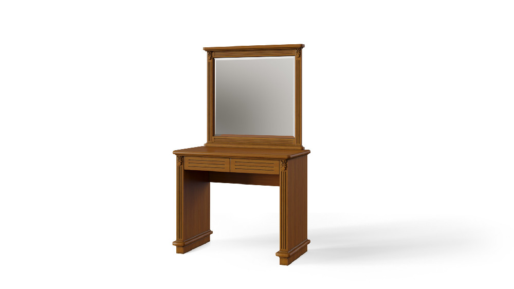 Идеальное решение для приверженцев минимализма в классике или просто для небольших спален. Полноразмерное зеркало и один скрытый за элементами дизайна выкатной ящик для приятных мелочей, в полной мере позволят насладиться функциональностью туалетного стола «Палермо» Лайт. Зеркало может быть закреплено к столу или к стене. Сборка не требуется.