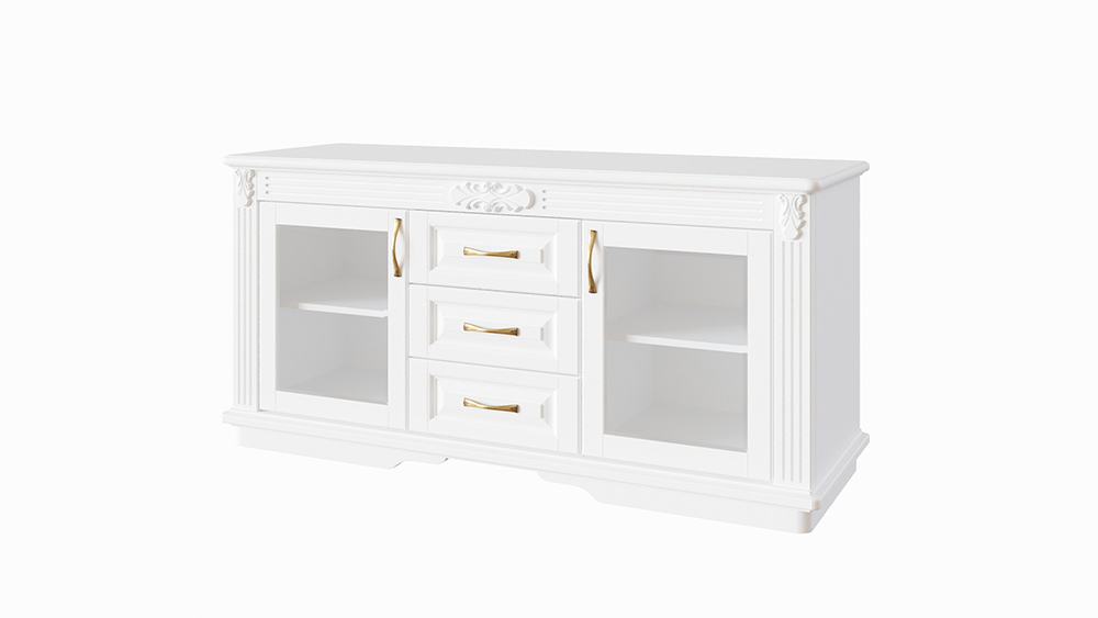Комод Греденция Dreamline Палермо (3 ящика со стеклом) бук-белый 156х53х75