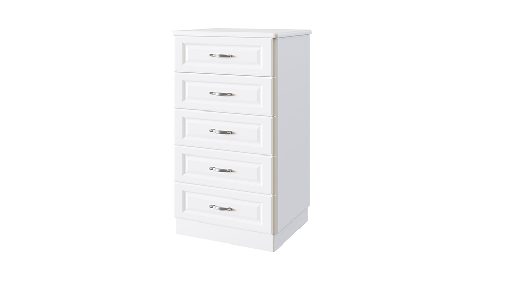 Универсальный предмет мебели — изысканный и функциональный комод — колонка «Эдем» занимает минимальное место в спальне, благодаря своим компактным размерам. Пять вместительных выкатных ящиков оснащены телескопическими направляющими в базовой комплектации и могут быть направляющими с системой довода опционально. Разнообразие цветовых решений на массиве бука и ясеня позволяет легко дополнить интерьер любых цветовых решений. Сборка не требуется.