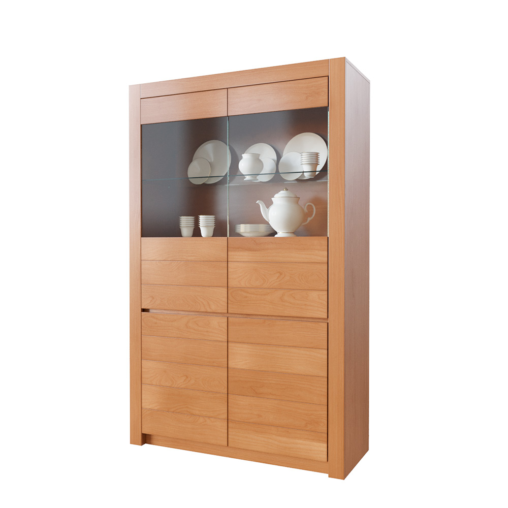 Шкаф выполнен из массива бука, по прочности схожего с дубом, поэтому долговечен и устойчив к механическим воздействиям. Внутренние детали шкафа (перегородки, вкладные полки, несущие полки) изготавливается из сращенного щита мягколиственнных пород древесины.