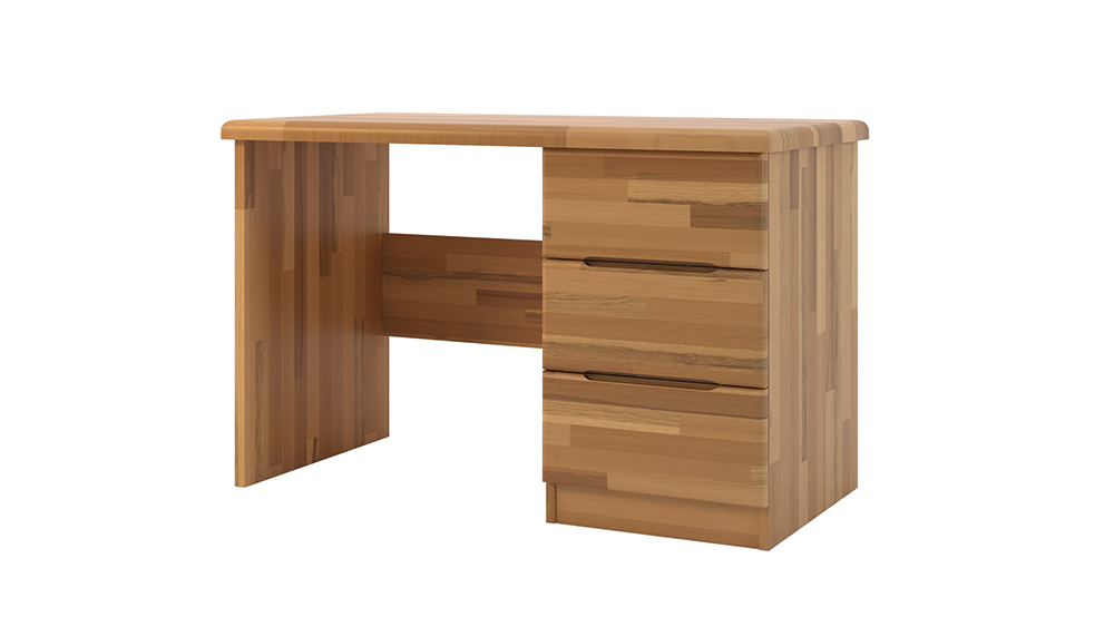 Стол Мальмо создан из прочного, устойчивого массива бука. Бук имеет уникальную окраску с природным рисунком. Неповторимая текстура и цвет отлично сочетаются с любым интерьером, создают тепло и уютную атмосферу. Рабочий стол оснащен тремя выдвижными ящиками. Ящики плавно открываются и закрываются. Ручки вырезаны в изделии и позволяют получить доступ ко всему объему ящика. Стол выполнен минималистичном стиле и впишется в дизайн как рабочего кабинета, так и спальни. Сборка не требуется.