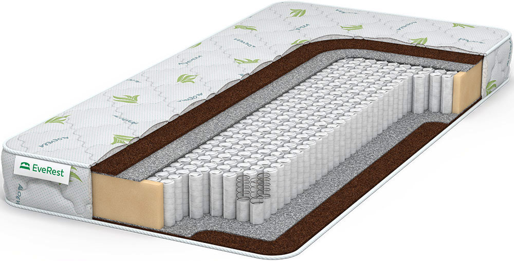 Жесткий пружинный матрас с ортопедическими свойствами и одним видом наполнителя — койрой кокоса. Основа модели — блок MultiPocket из адаптивных микропружин (500 пр./кв.м), в пружине 8 витков, толщина сечения проволоки — 1,4 мм. Анатомические свойства матраса связаны со способностью пружин точечно реагировать на нагрузку, повторять изгибы тела. Жесткость матрасу с двух сторон придают кокосовые плиты 1 см толщиной. Это натуральный наполнитель, пропитанный латексом для скрепления волокон кокоса и повышения пластичности настила. Между наполнителем и пружинным блоком проложен войлок, защищающий койру от истирания. Трикотажный чехол защищен от бактерий составом Aloe Vera.