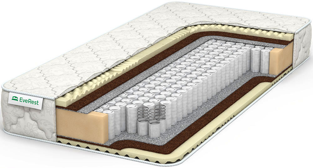 Пружинный матрас средней жесткости с массажными и ортопедическими свойствами. В качестве наполнителя в нем использован семизональный латекс и койра.
