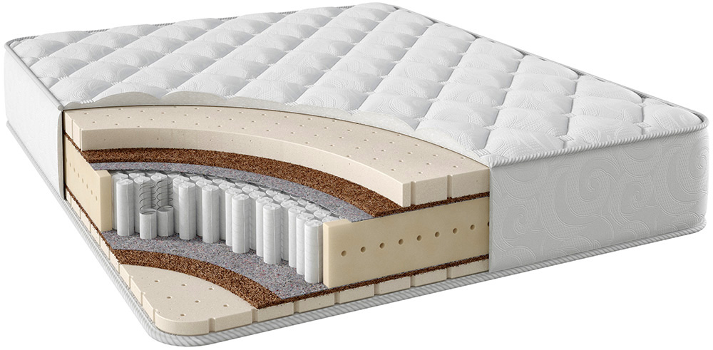 Stories Пэшн Мультипакет 1000 – анатомический матрас средней жесткости с точечной поддержкой. Подходит людям с большим весом (до 140 кг на одно спальное место). Основа модели – усиленный пружинный блок S1000 со спиралевидными элементами в независимых персональных чехлах. Дополнительные наполнители: койра кокоса, термовойлок, натуральный латекс. Наружный чехол – трикотаж. Благодаря наличию латексного слоя, матрас способствует полноценному расслаблению мышц. Кокосовая койра корректирует жесткость и обеспечивает ортопедический эффект, а термовойлок заботится о температурном балансе.